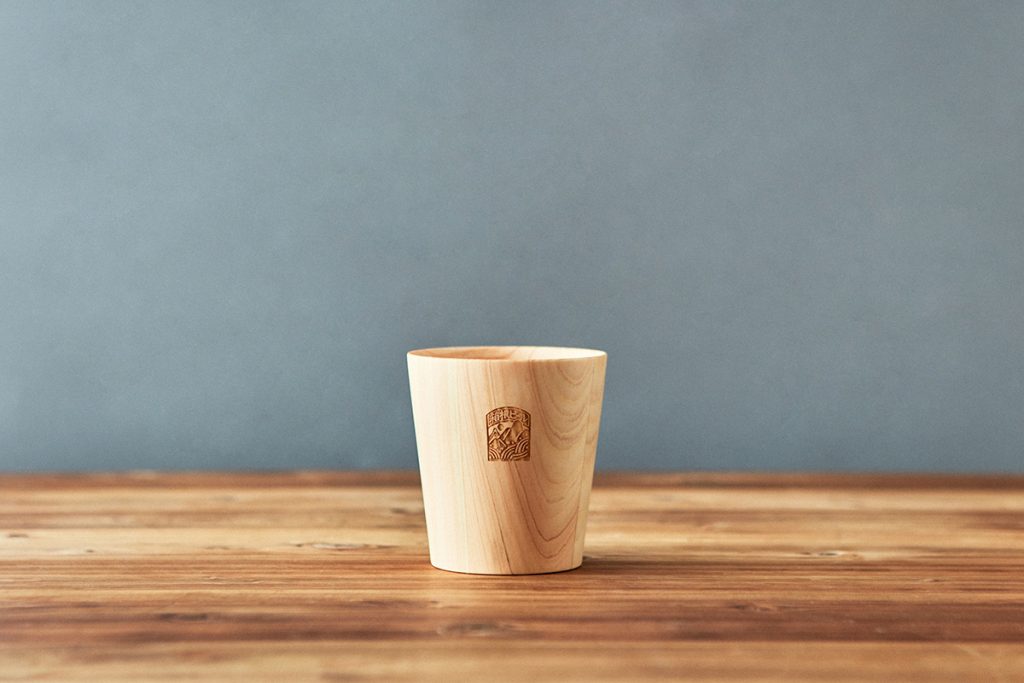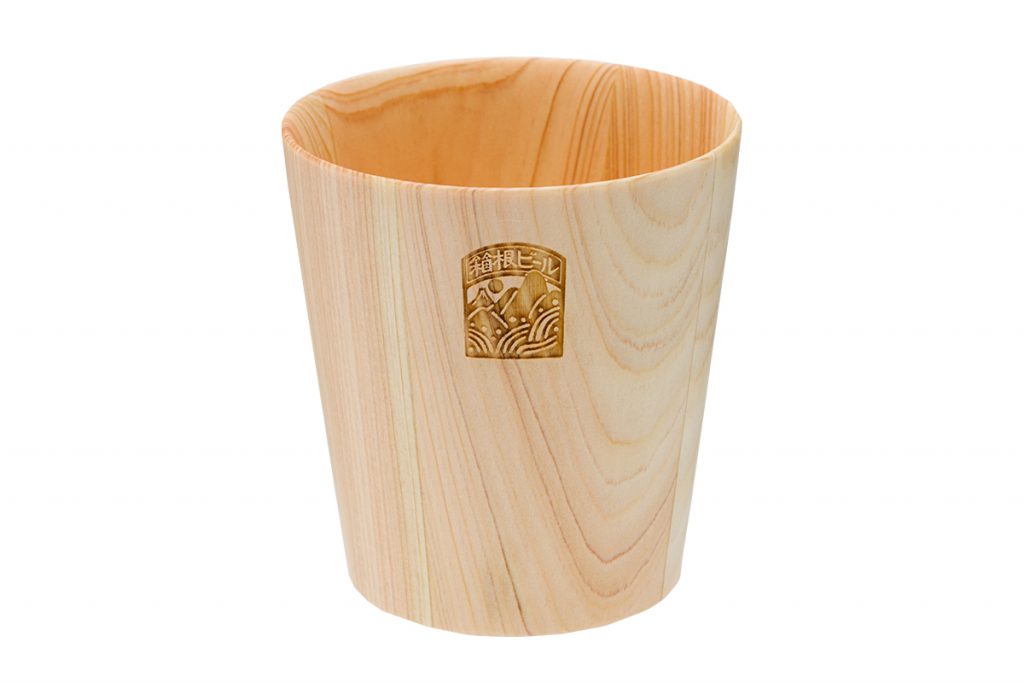 小田原の間伐材を使用し、箱根ビールのロゴを彫り込んだオリジナルタンブラー。