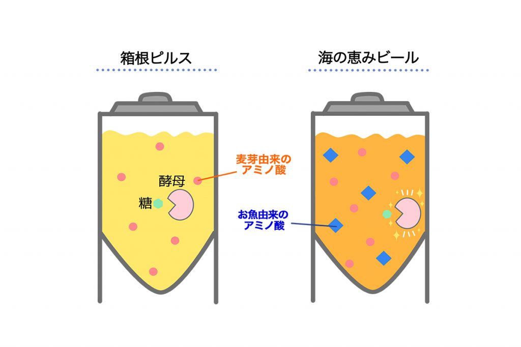 こうして生まれたのが、ホップだけでは出せない華やかな香り。麦芽由来のアミノ酸に加えてお魚由来のアミノ酸も発酵に作用することで、酵母の働きが活発になり、香り際立つビールが完成しました。まさに“海の恵み”でつくられたビールです。