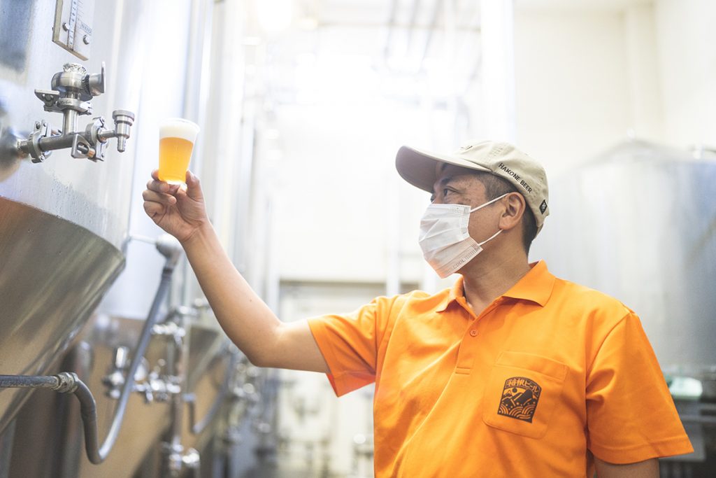 「25周年限定醸造 海の恵み」はお魚由来のアミノ酸が加わるため、アミノ酸が多い状態で発酵が進みます。発酵の温度帯や熟成期間の調整が難しく、最適解にたどり着くまでに約半年かけて追及しました。完成した一杯を口にした瞬間、これまでの箱根ビールにはない華やかな香りに、驚きと手ごたえを感じました。