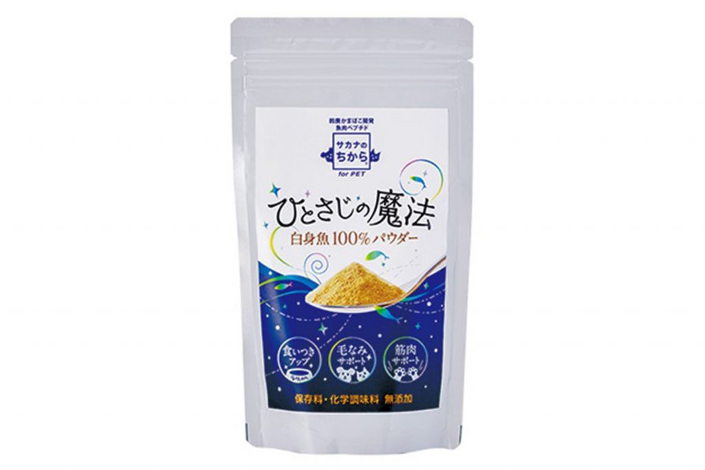 「ひとさじの魔法」は魚たんぱくを酵素分解した魚肉ペプチドを原料にしており、良質な魚たんぱくを素早く効率的に補給できます。魚たんぱくのちからでペットの健康を維持し、筋肉や毛なみをサポート。白身魚100%の美味しさと栄養をぎゅっと凝縮しているので食いつきもよく、食べムラや食欲不振の際にもおすすめです。