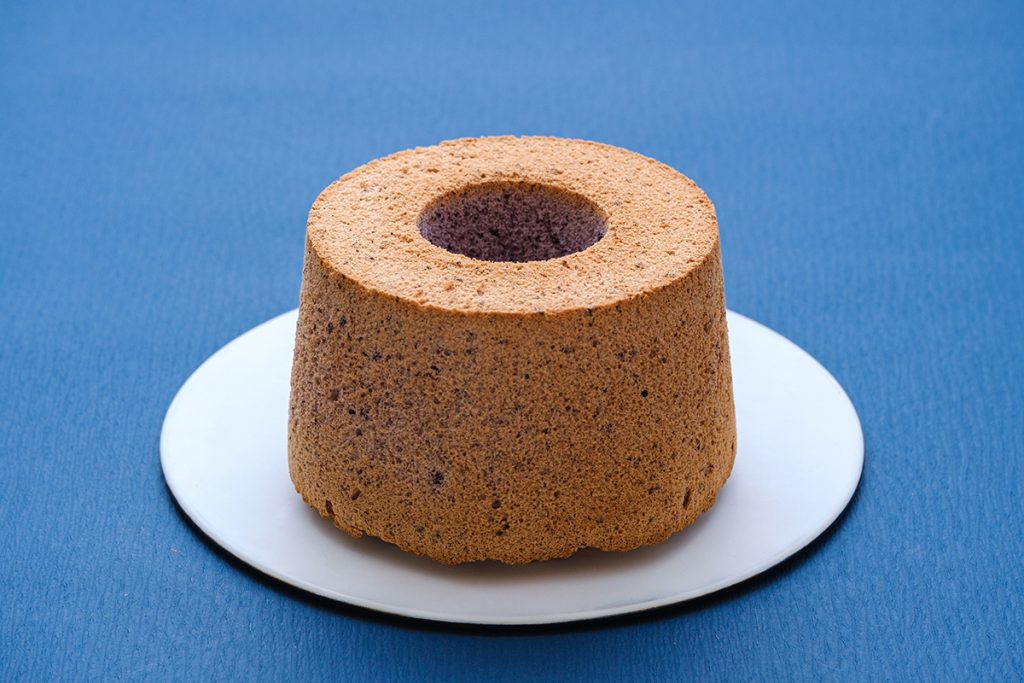 しっとりとした食感が人気の「お陽さまのシフォン」ですが、ブルーベリーのシフォンはさらに果汁のジューシー感が加わって、しっとりとした中に果実の瑞々しさを感じます。水分が多いので、生地をふんわりと膨らませるのは至難の技。しっとり感を残しつつ、ふわりと焼き上げているところにパティシエの技が光ります。軽やかで瑞々しい食感とともに爽やかな果実の風味が香り、ブルーベリーの優しい甘みを味わっていただけます。