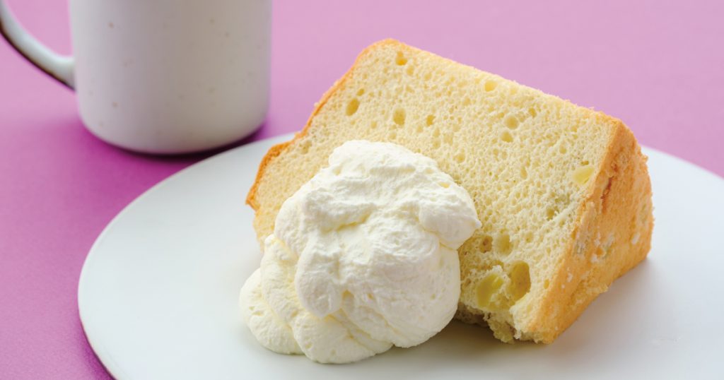 11月のシフォンケーキは、米粉とさつまいも、どちらも優しい甘さの素材を組み合わせておつくりしています。
