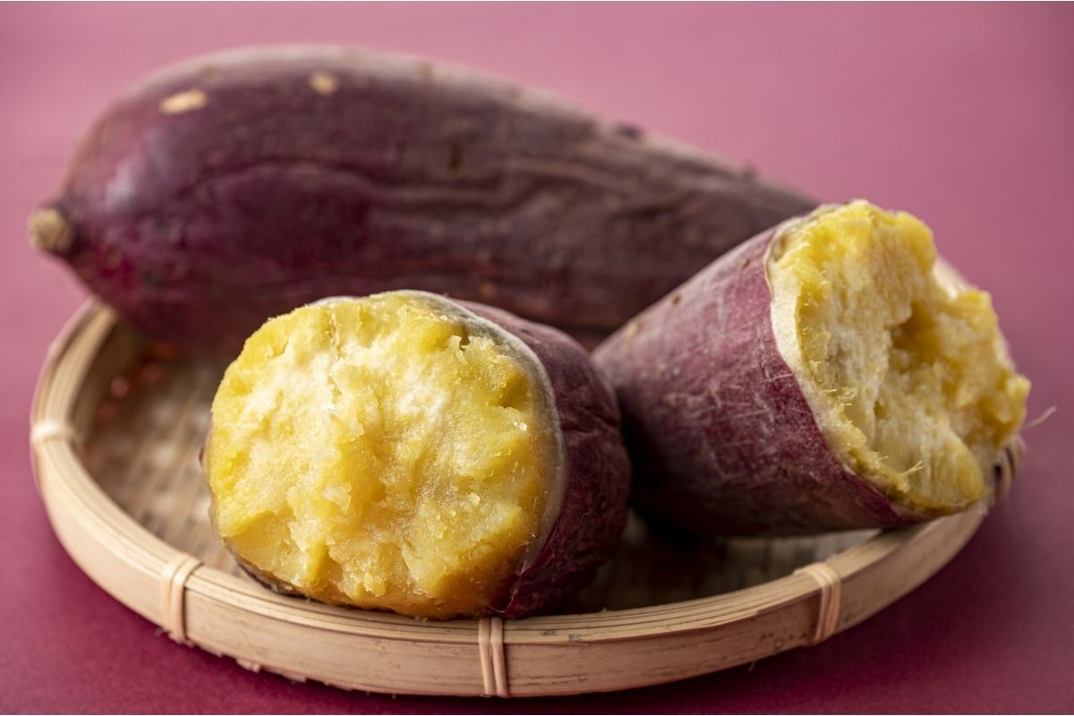 さつまいもはオーブンで焼き、丁寧に皮をはがします。そして実を手作業で刻み、米粉を加えた生地に合わせて焼き上げます。様々な種類があるさつまいもの中でも、紅あずまはホクホクとした食感と優しい甘みが特徴。オーブンで焼き上げたさつまいもは、そのまま食べてしまいたいくらい、熱々ほっくほく。ふんわりとしたシフォンの柔らかさをより引き立ててくれます。