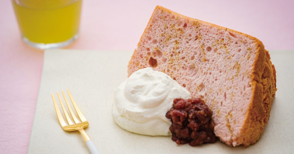 桜の塩漬けに淡いピンク色、シフォンに春を閉じ込めて