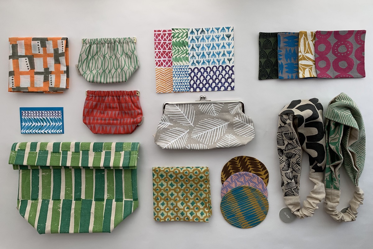 Woo textilesはテキスタイルデザイナーのムヒーレゆかり氏が描いた模様を、手捺染やインドのブロックプリントなどの技法で手作りしている布製品の工房です。