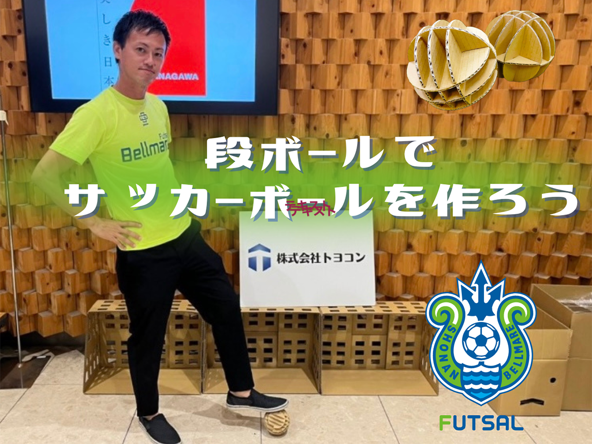 株式会社トヨコンご協力のもと、環境配慮型段ボールを使ってサッカーボールを作るワークショップを開催します。自分で作った世界に一つだけのボールは、会場のフリースペースでお試しいただけます。