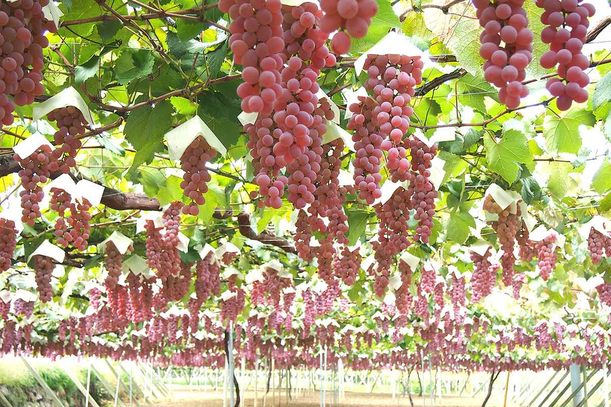 山梨県甲州市では明治時代から日本独自のぶどうを使ったワインづくりが行われています。特に「甲州種」は1000年以上前に日本に伝わったとされ、日本の品種“マスカット・ベーリーA”とともに、和食にも合うワインとして広く飲まれています。