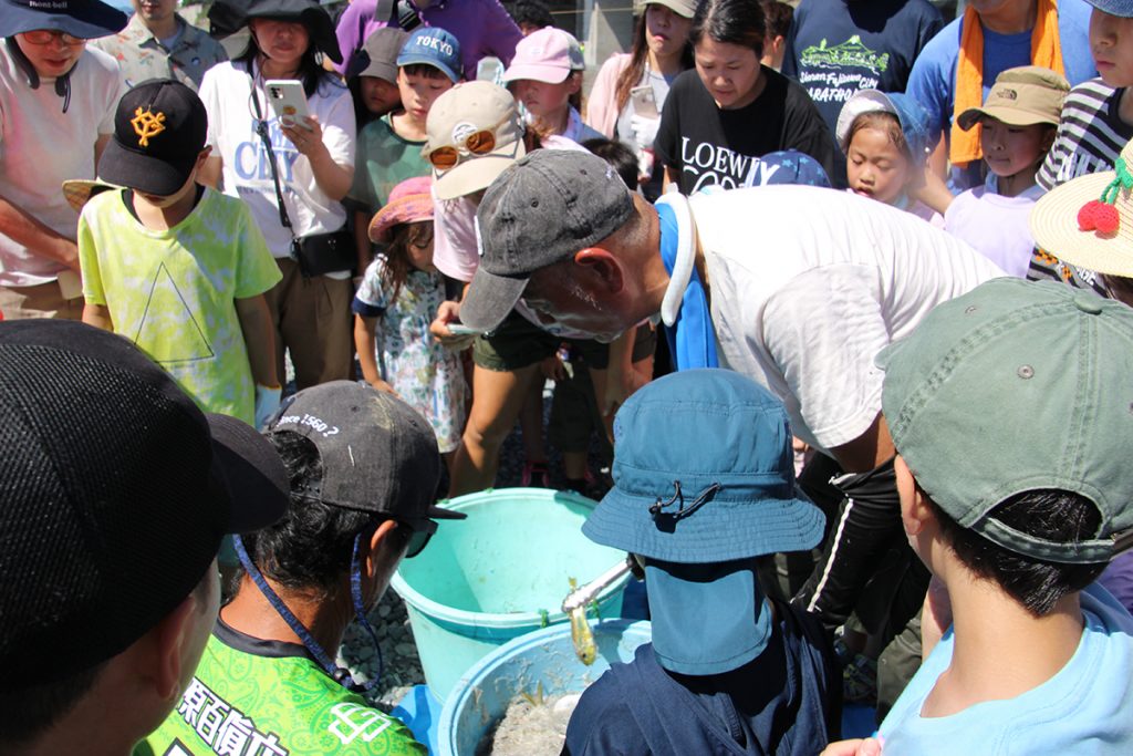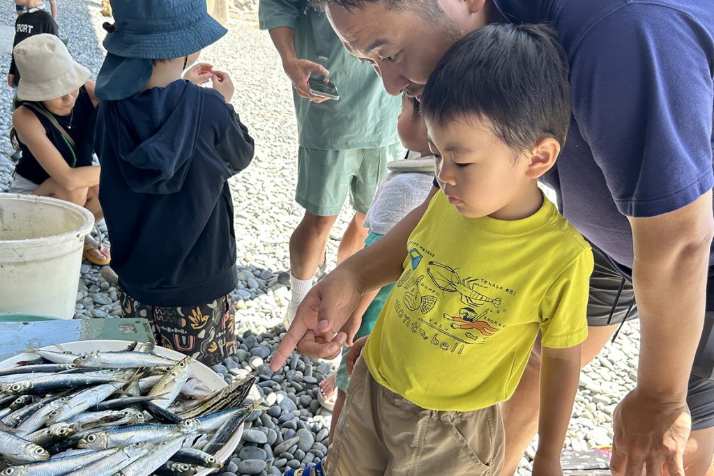 生の魚を見て、触って、観察して、普段食べている魚がどんな特徴があるのか、地引網を通して学んでいただくいい機会となりました。