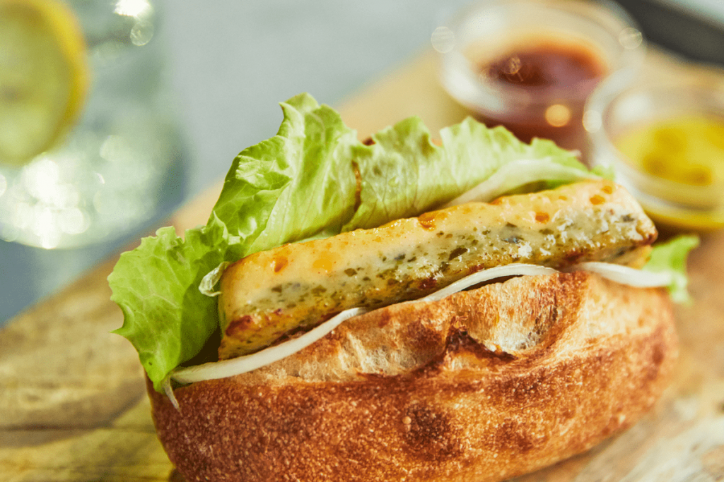 写真下は「フィッシュプロテインバー 5 種のチーズの帆立グラタン風」のサンドイッチ。レシピはこちらから。