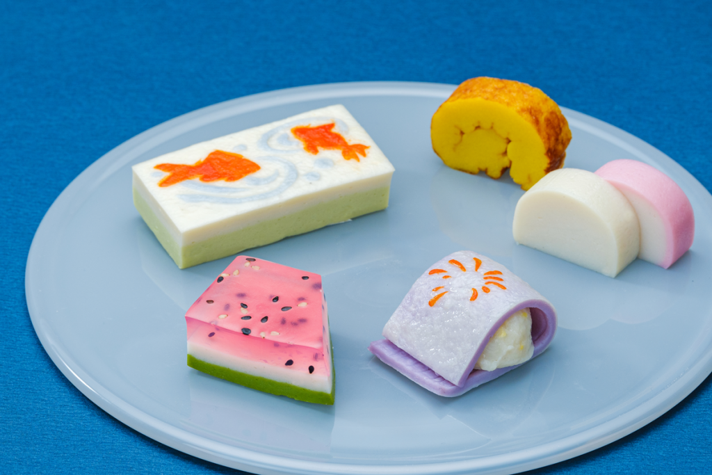 日本の夏をかまぼこで表現したセットです。スイカ、花火、金魚の細工蒲鉾、鈴廣自慢の板蒲鉾と伊達巻を詰め合わせました。おかずや晩酌にすぐに召し上がっていただけます。