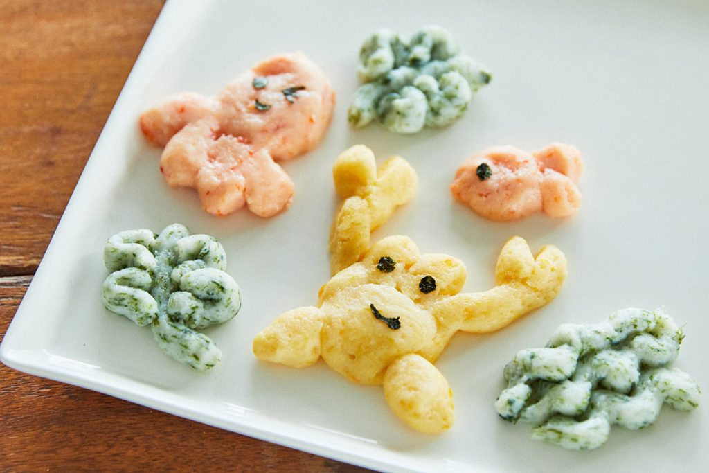 かぼちゃやパプリカ、青のりなどを加えれば、色を付けることもできます。