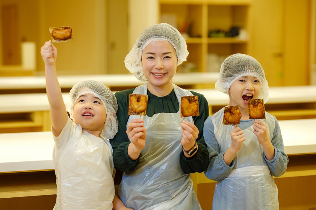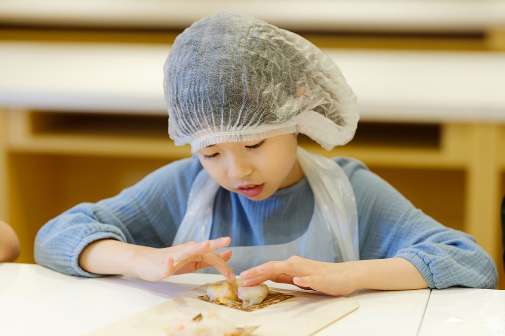 魚のすり身にコーンや枝豆などお好みの具材を混ぜて成形していただきます。くまやハートなど、お好きな形にどうぞ。とても簡単なので、未就学児のお子さまでも安心してご参加いただけます。