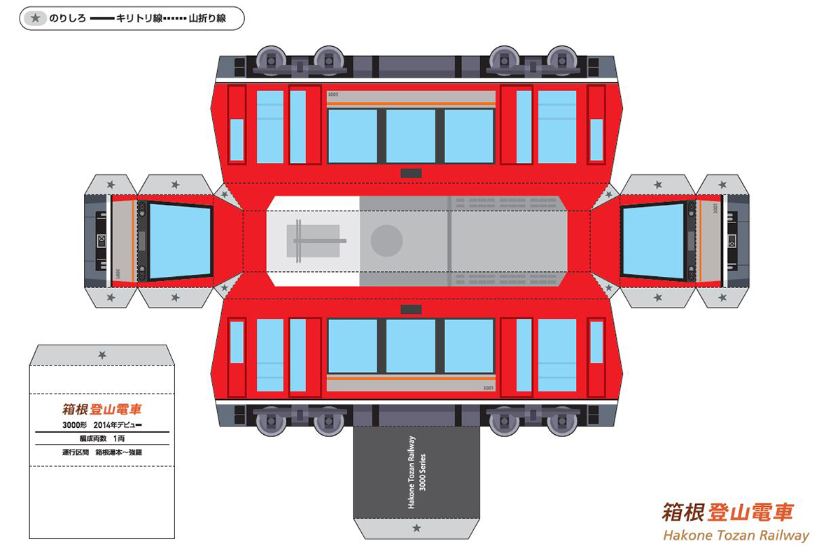 紙を折って組み立てて、箱根登山電車オリジナルのペーパークラフトを作ります。