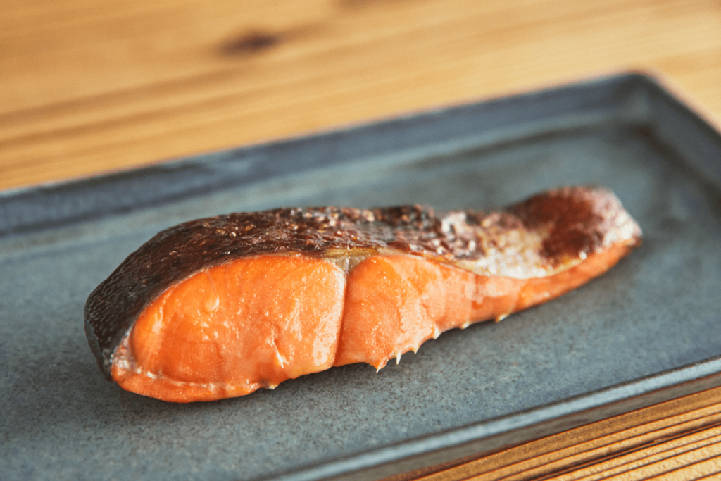 鈴廣ブランド「こゆるぎ屋」の漬け魚。じっくり寝かせた天然熟成の味噌と酒粕でべにさけをつけて芳醇な香りと旨味を楽しめます。