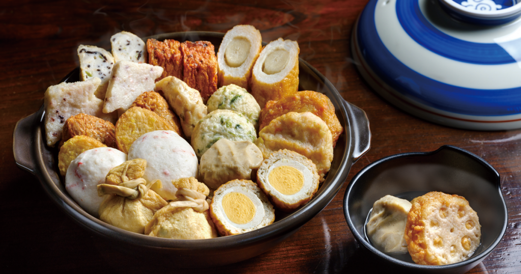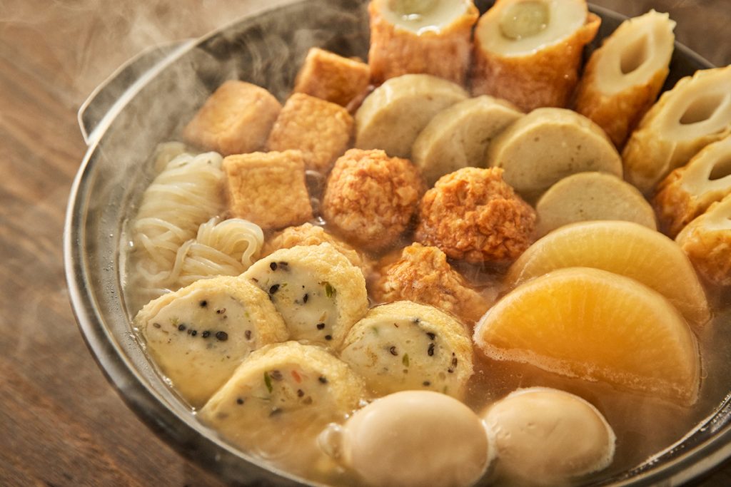 魚の旨みを生かしたおでん種に、玉子や昆布、旬の野菜を盛り合わせました。