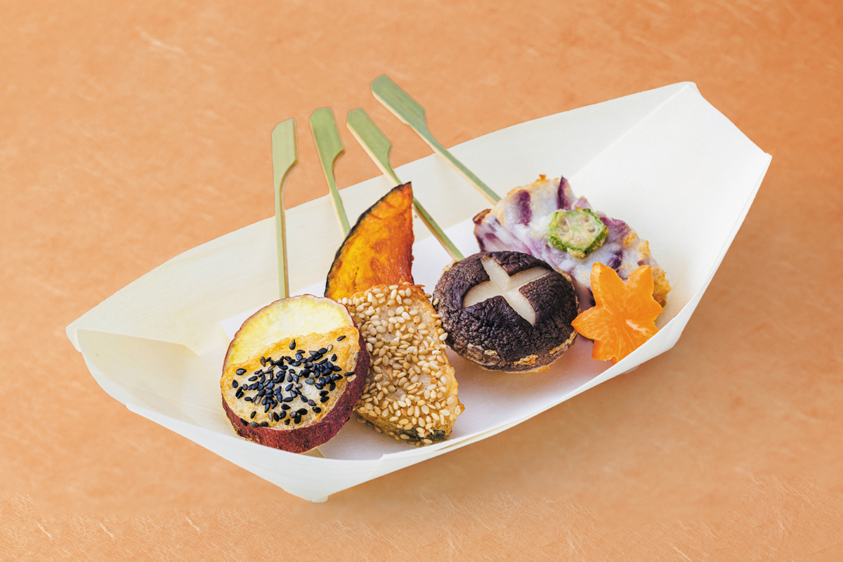 秋メニュー)「秋野菜ときのこの串揚げ盛り」すず天