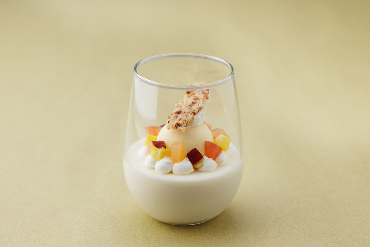 酒粕をほんのり感じるミルクプリンと秋の味覚をグラスに盛り込みました。
