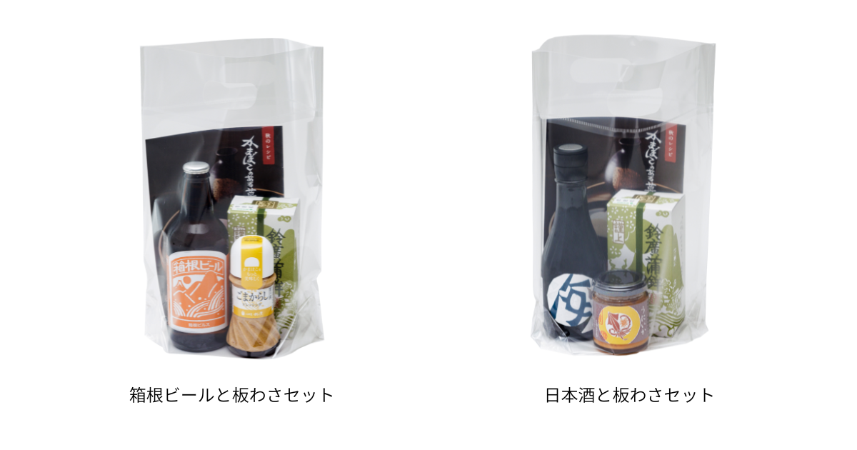 さらに、手軽におうち晩酌が楽しめるお酒とかまぼこのセットもご用意しております。