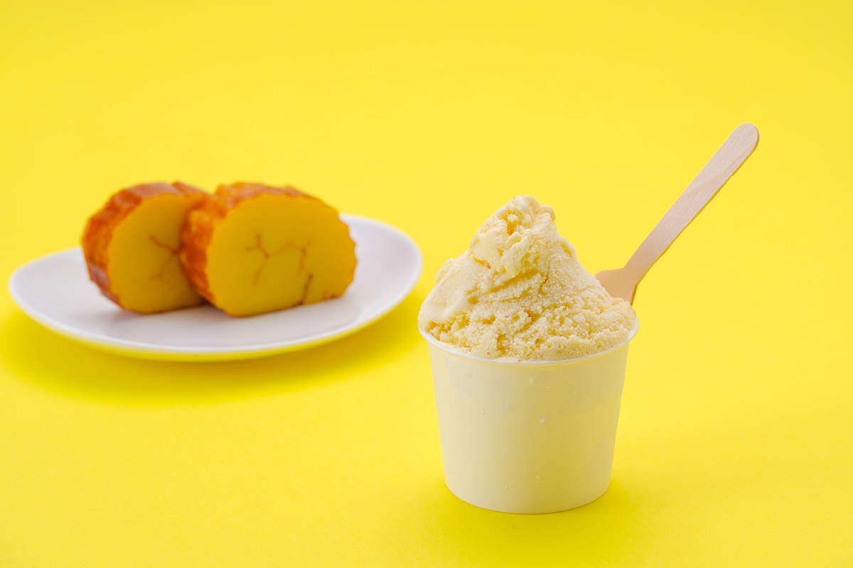 伊達巻とクリームチーズを練り込んだジェラートは、まるでチーズケーキのような味わい。なめらかで濃厚な味わいなのに、不思議とあっさり食べ切れる絶妙な甘さ加減がポイントです。