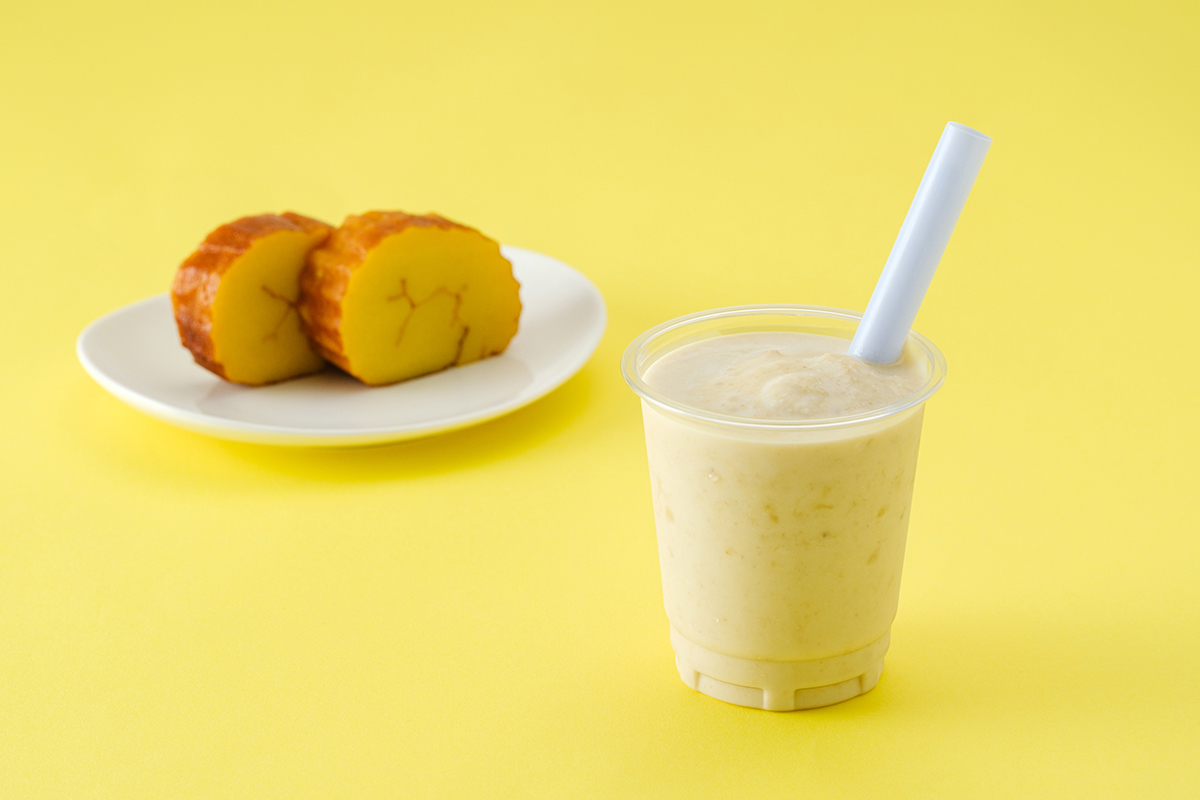 伊達巻スムージーは、凍らせたバナナとペースト状の伊達巻を合わせ、爽やかな酸味を加えて仕上げました。