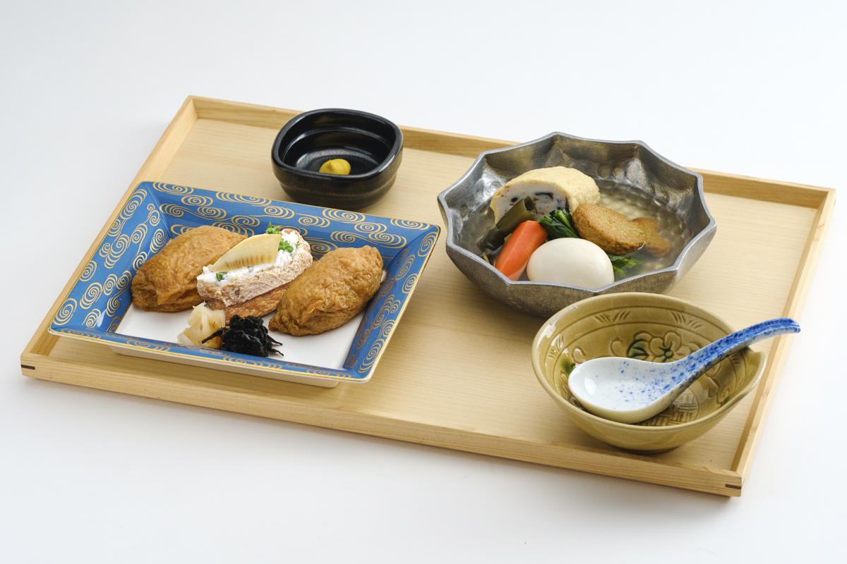 メニュー2 春おでん&かまぼこ筍稲荷セット/名水甘味 且座