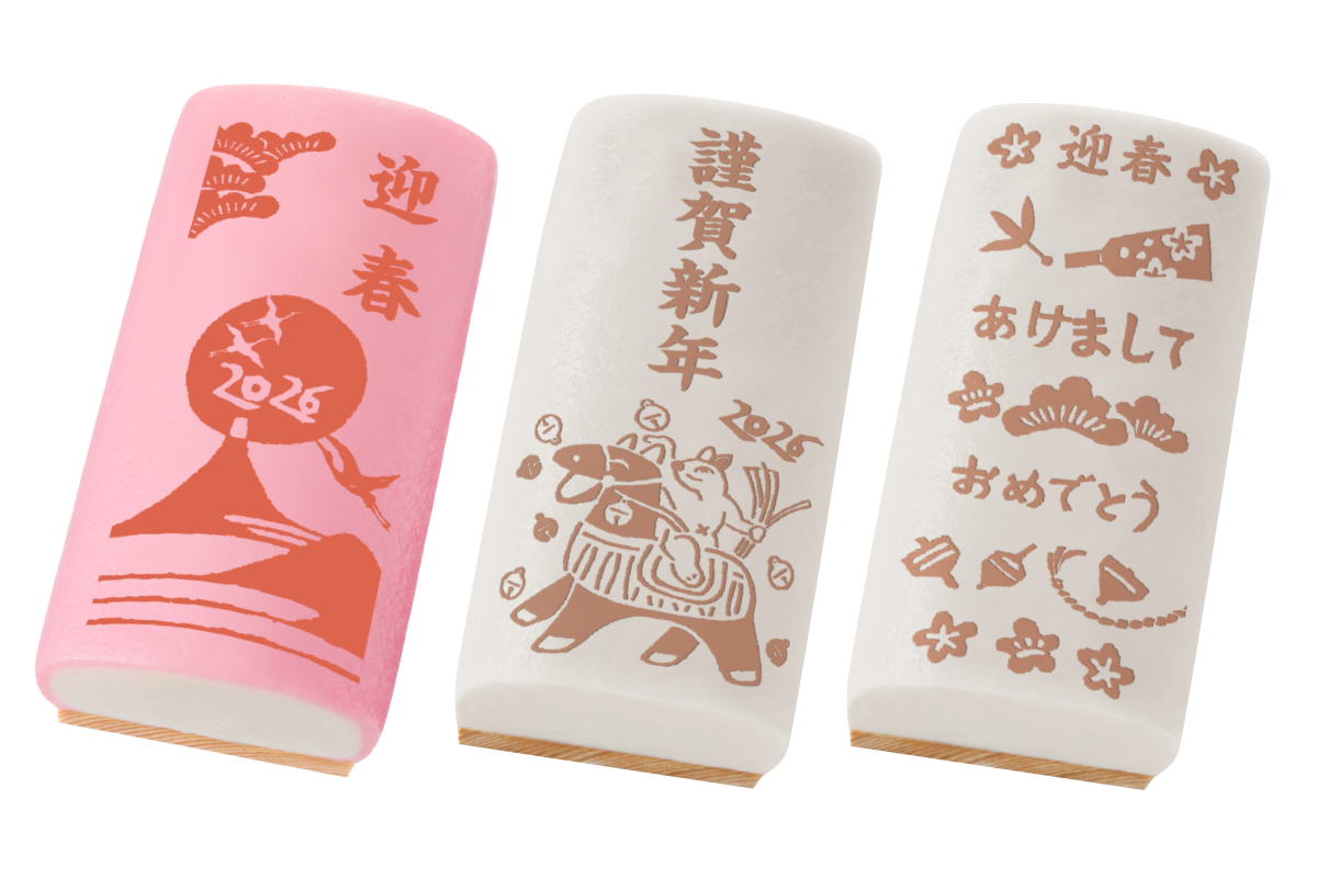絵や文字をかまぼこにプリントできる「プリかま」でオリジナルのお年賀かまぼこをおつくりいただけます。「迎春」や「謹賀新年」、来年の干支・巳のテンプレートもございますので、初めての方でもお気軽にご利用いただけます。
