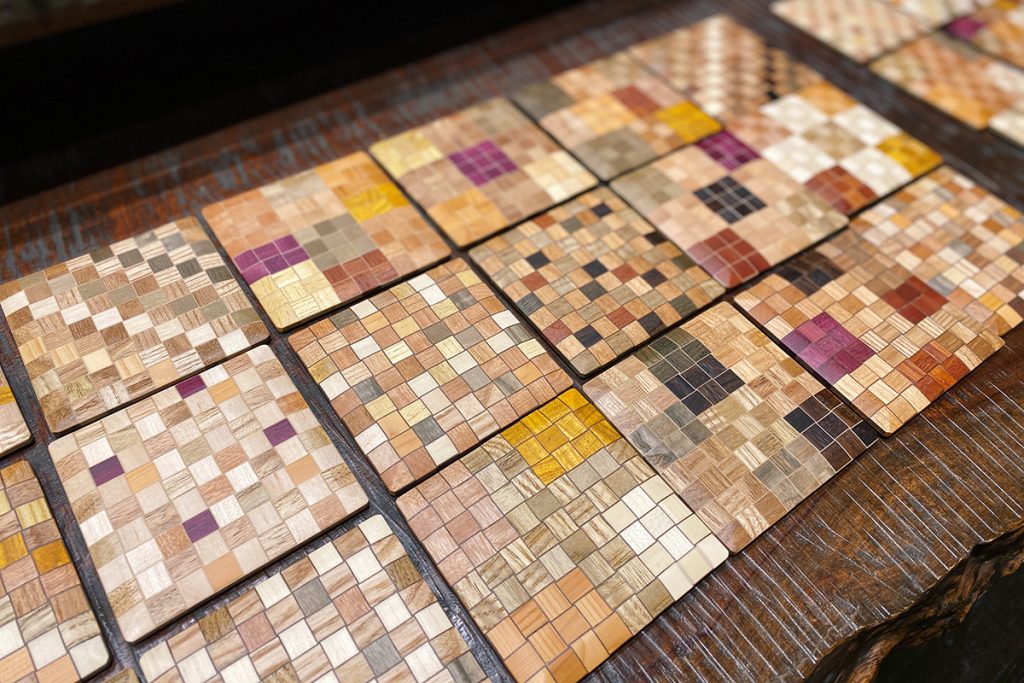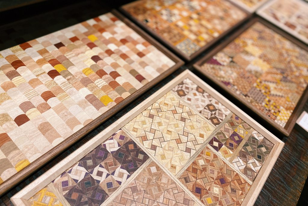 正方形の中に市松模様に広がる木の色の組み合わせには、一つとして同じものはありません。普段から太田さんもお客様が好きな色合いを選んでいただくのだそうです。