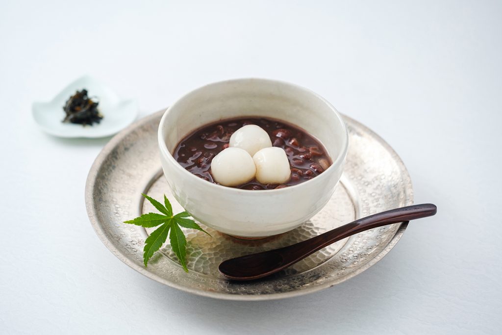 優しい甘さのぜんざいにつるりとのど越しのよい白玉を添えて。ひんやり涼やかに、暑い季節でもすっきりと召し上がっていただける味わいに仕上げました。