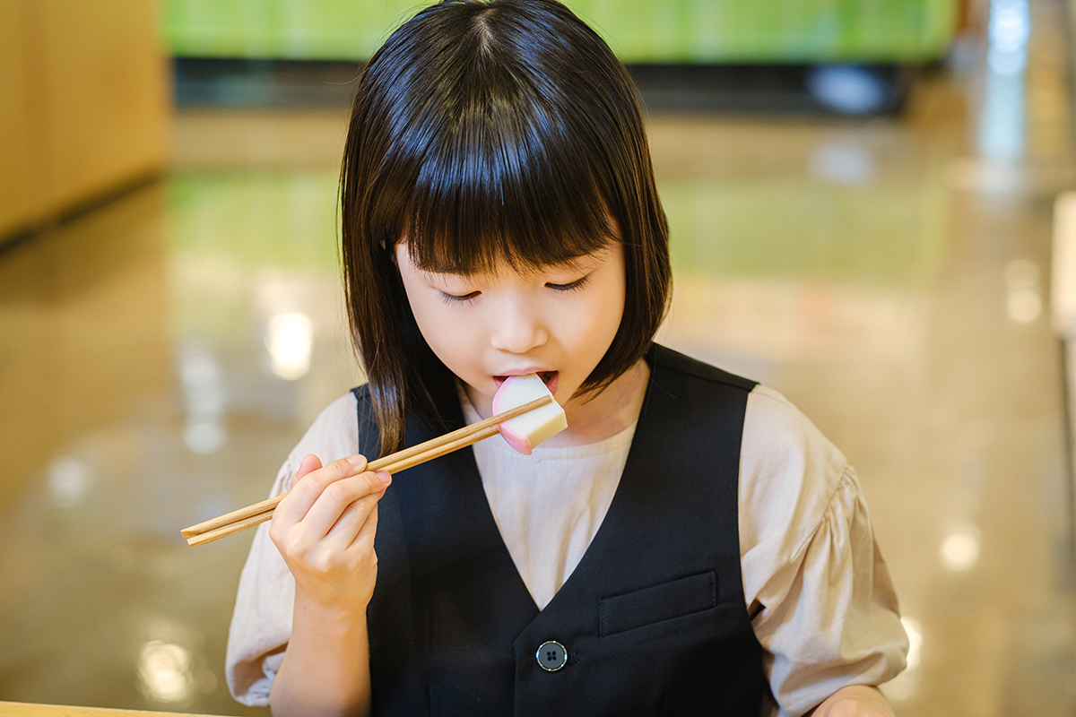 次はあしをチェックします。かまぼこの弾力のことを“あし”といいますが、箸でつまんでみたり、少しかじって違いを感じてみましょう。