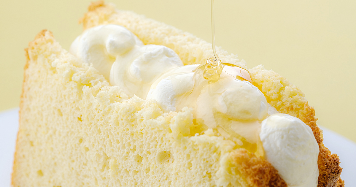 桜の花をペーストにして生地に混ぜ込んでいます。桜の香りがふわりと広がる、春ならではのシフォン。毎年、お客様から「桜のシフォンケーキを買いに来ました」とおっしゃっていただける人気のシフォンです。