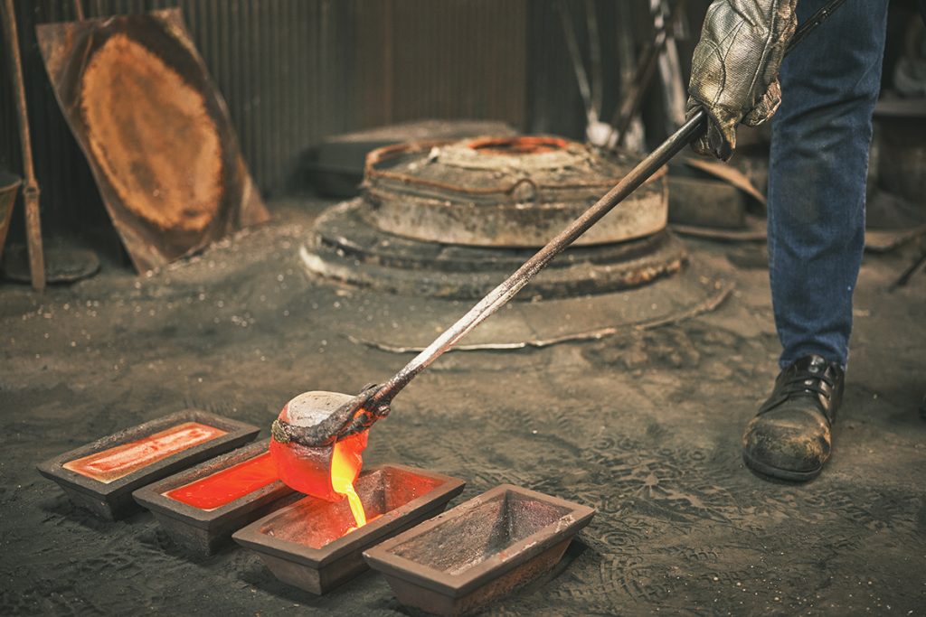 「鳴り物」の作品をつくるには様々な工程がありますが、この合金をつくる工程が良い音を出すうえで一番影響が大きいのだそう。風鈴の音色が心地良いのは、素材から徹底してつくられているからなのです。