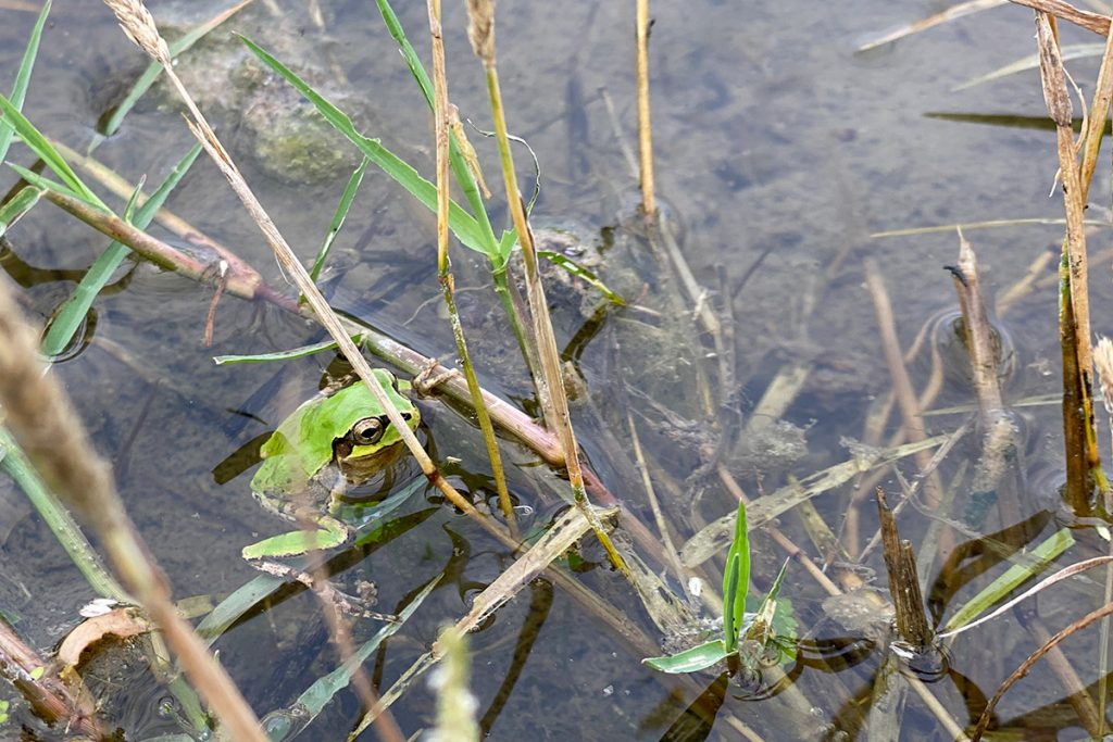 志村米穀店の農薬も化学肥料も使用しない田んぼには、四季によってさまざまな生き物が集います。6月頃の田んぼはアメンボやカエルなどが生き生きと暮らしています。さて、田植え当日はどんな生き物に出会えるでしょうか?