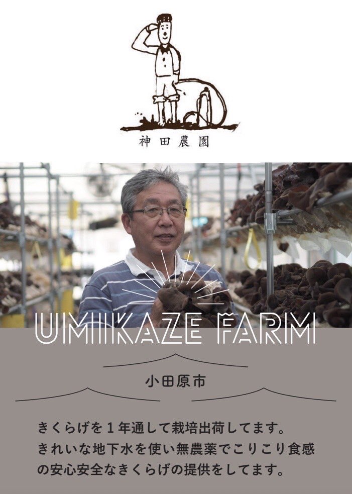 神奈川県小田原市にある神田農園は国産のきくらげを生産する農園です。最適な環境ときめ細やかな管理で栽培を行い、肉厚でぷりぷりとした食感のきくらげを育てています。