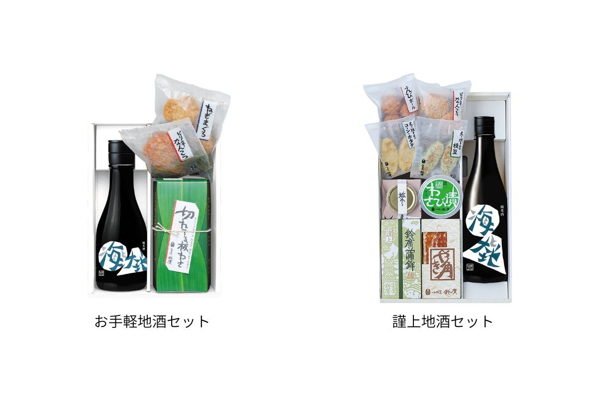 日本酒「海と大地」に、包丁いらずの板かまぼこと揚げかまぼこを組み合わせた手軽に楽しめるギフトセットです。日本酒をシンプルに板わさで楽しみたい方へ、粋な時間をお届けします。