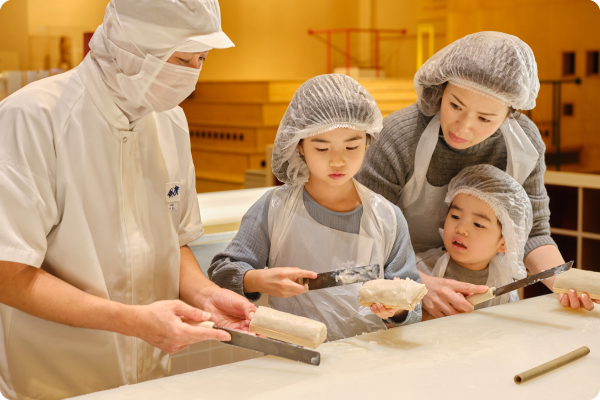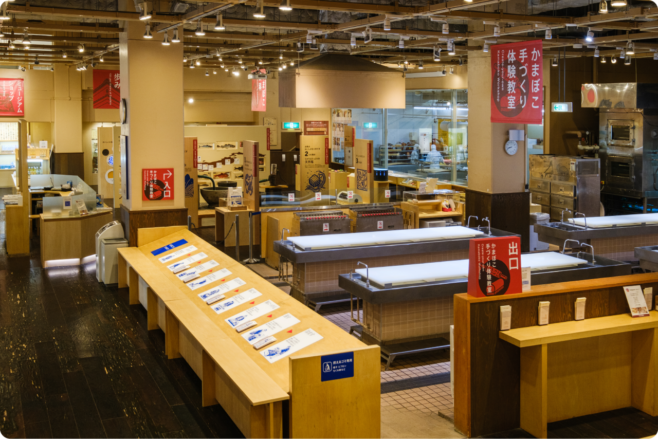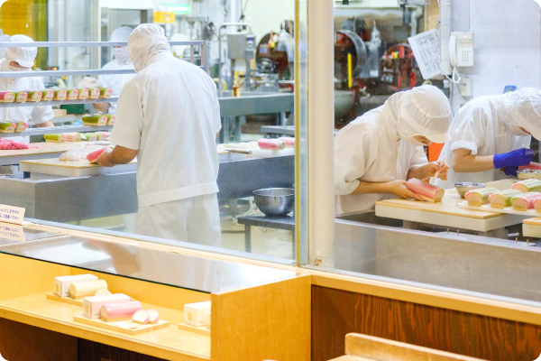 また、ガラスごしでかまぼこ職人たちの技を間近で見られるうえ、実際のかまぼこづくりも体験可能です。