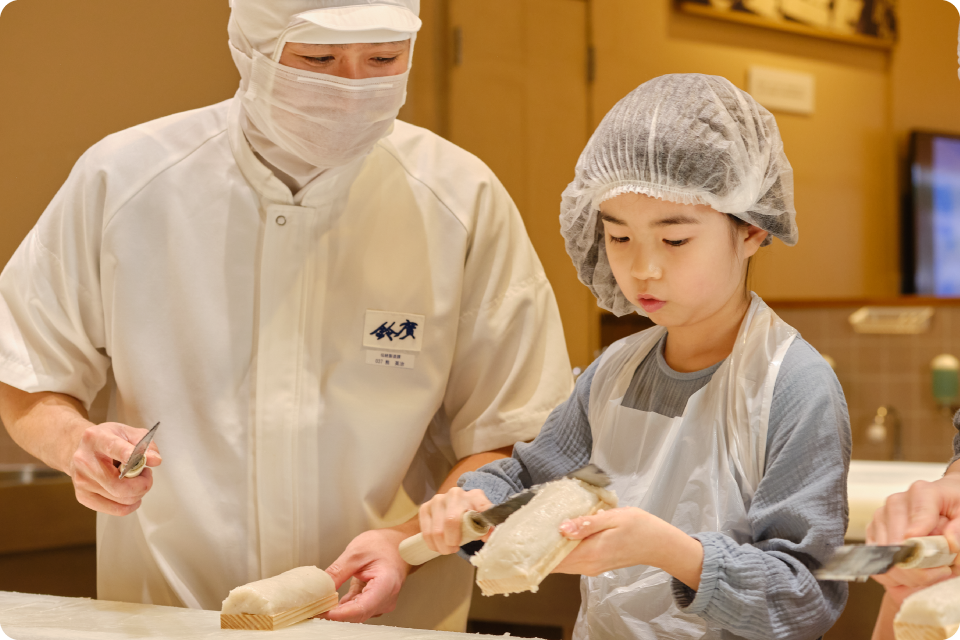 かまぼことちくわの両方を手づくり体験することが出来ます。長年の修行を積んだ職人と一緒に手づくり体験。
