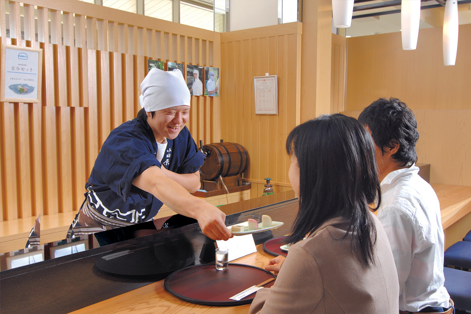 鈴廣自慢の小田原かまぼこです。職人手づくりの「超特選蒲鉾 古今」、お魚のすりみや製法が異なる「特上蒲鉾」、「謹上蒲鉾」の味や食感の違いをお試しいただけます。