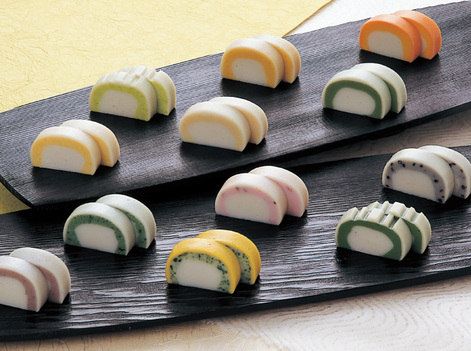 かぼちゃと人参を練りこんだ師走限定のかまぼこです。かぼちゃは「冬至に食べると病気知らず」と言われるほど栄養価が高く、にんじんは免疫力を高める「カロテン」を豊富に含んでいます。アミノ酸バランスのよいかまぼこと合わせて健康的に。