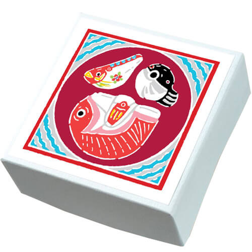 カラフルでかわいらしい魚の土鈴を描いたデザインです。同じ魚類なのに、バランスもフォルムもまったく異なるアンバランスさが魅力的!