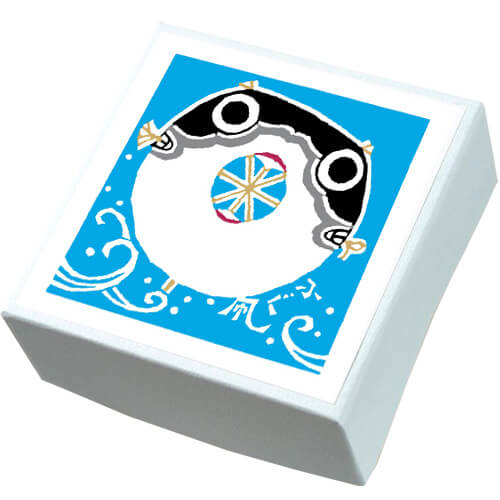 インパクト大のかわいらしい絵柄「ふぐ凧」です。丸くキュートな瞳に視線がいきますが、よくみるとさわやかな風も吹いています。全体が気持ちの良い水色で描かれておりとても涼しげです。