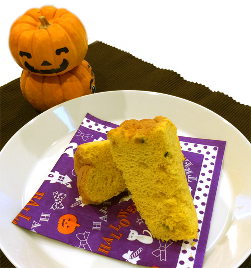 シフォンはもともとふんわりしっとりしていますが、かぼちゃのおかげか口あたりが一段としっとりしています。