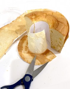 先ほども書きましたが、紙型に入ったままのシフォンケーキって取り出しにくいですよね。包丁で紙ごと切ろうとすると、結構力が必要で大事なケーキがクシュっとなってしまったり。