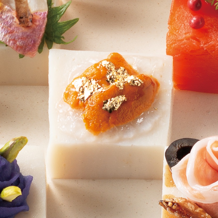 とろける潮のアロマ 金箔とウニのピンチョス