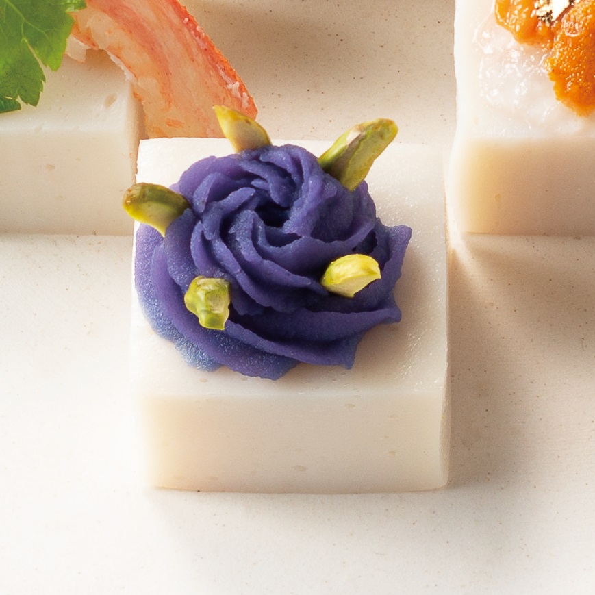 魅惑のスイーツ? バター薫るピスタチオと紫いものピンチョス