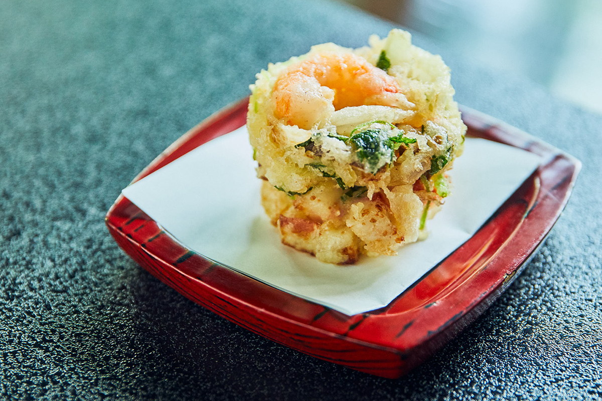 鈴廣自慢のかまぼこと小田原野菜を組み合わせた食べごたえのあるかき揚げは、「美藏」の蕎麦と一緒に、「大清水」「潮の音」では和食膳の定番として提供されます。