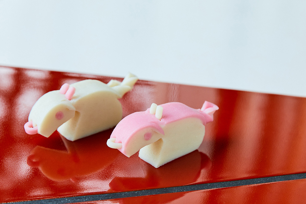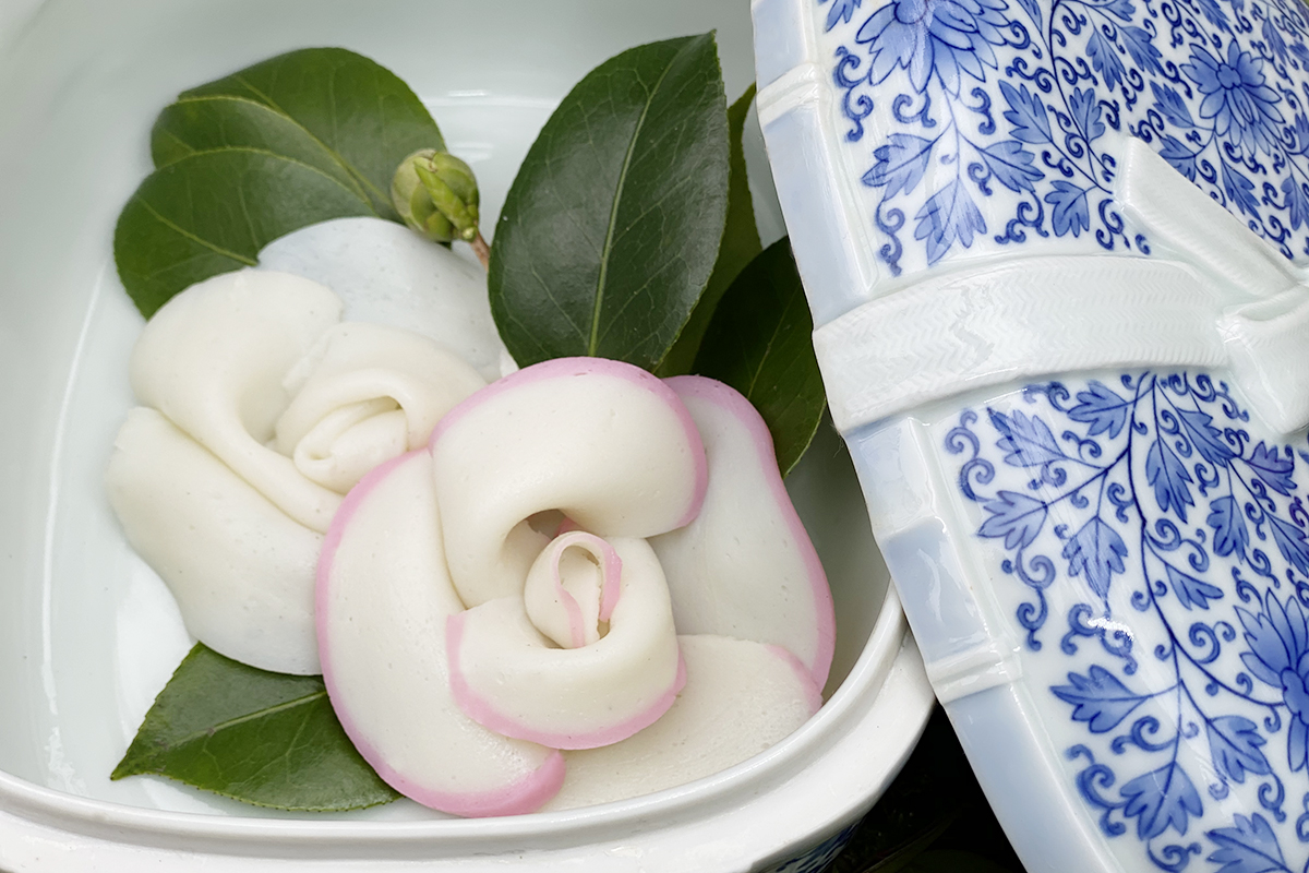 「板かまぼこのしなやかな弾力は、飾り切りに向いています。曲げたり包んだり、ひねったり。今回の丑のしっぽは結びこんにゃくと同じ方法で作っていますが、弾力があるからこそできることです」(かまぼこママさん)。