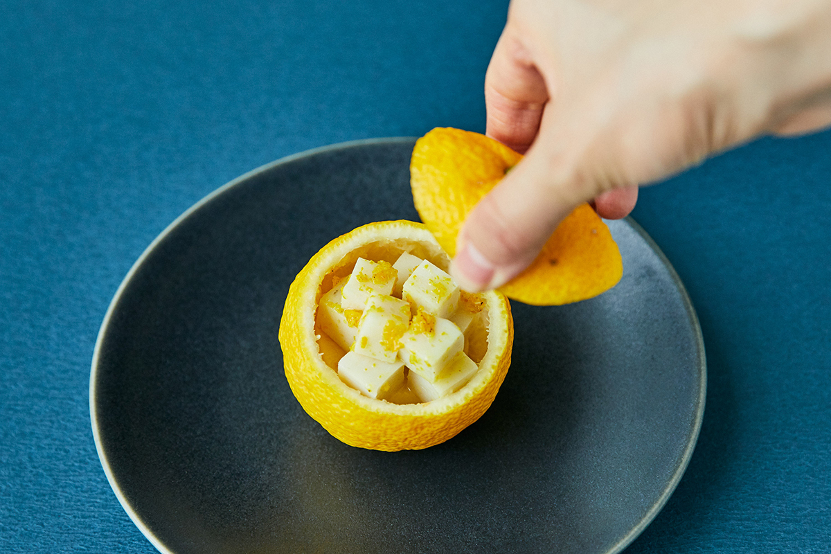 ④食べる直前に、お好みで柚子の果汁をかけて召し上がっていただいても。