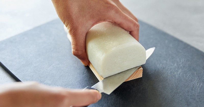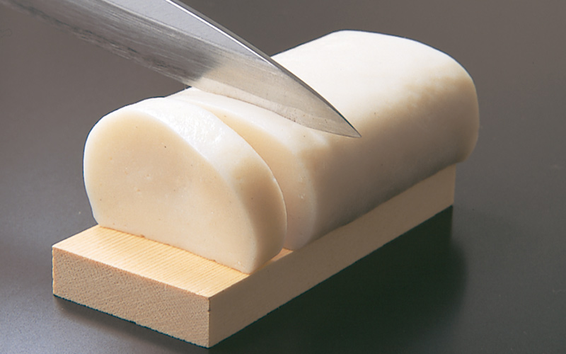また、片刃の薄刃包丁がおすすめです。両刃の包丁は、弾力があるかまぼこにはあまり向いていません。包丁の刃の両側に力が加わるため、かまぼこが変形し、切りにくいのです。
