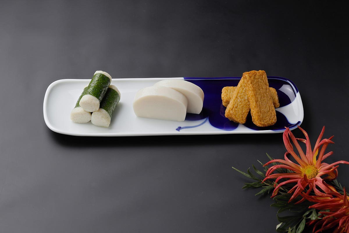 きんめ鯛のあげたい」は金目鯛のほぐし身がぎっしりと詰まった揚げ蒲鉾。オーブントースターなどで少し炙ると、ジューシーな揚げ香が漂い、ふわっとしたすり身とほっくりとした金目鯛のほぐし身が大満足の味わいです。