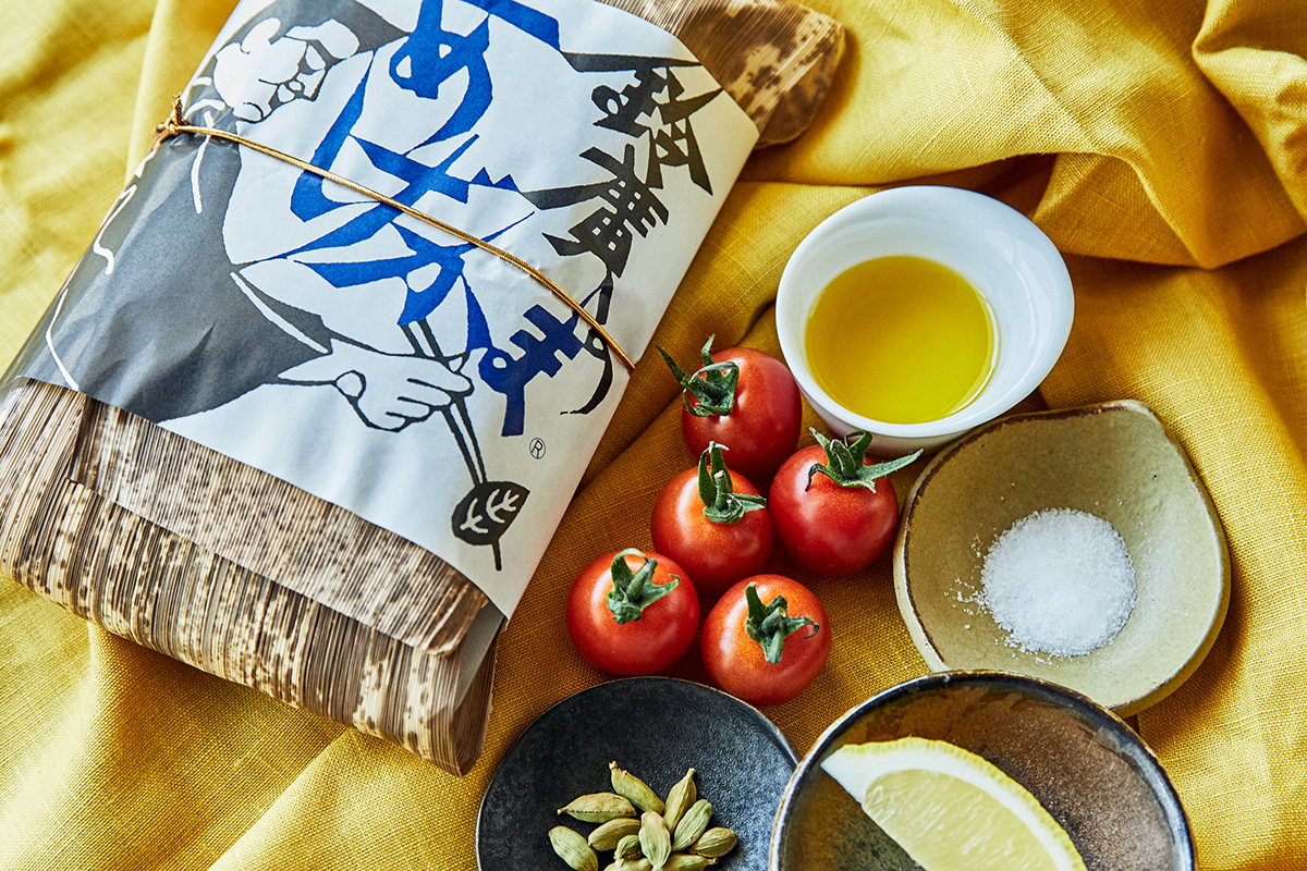 トマトの旨味と酸味にカルダモンの清涼感のある香りが相まって、あげかまに寄り添います。もちろんビールにもよく合いますが、コクのある純米酒をちょっと温めて香りを高めると、グッと相性もよくなります。